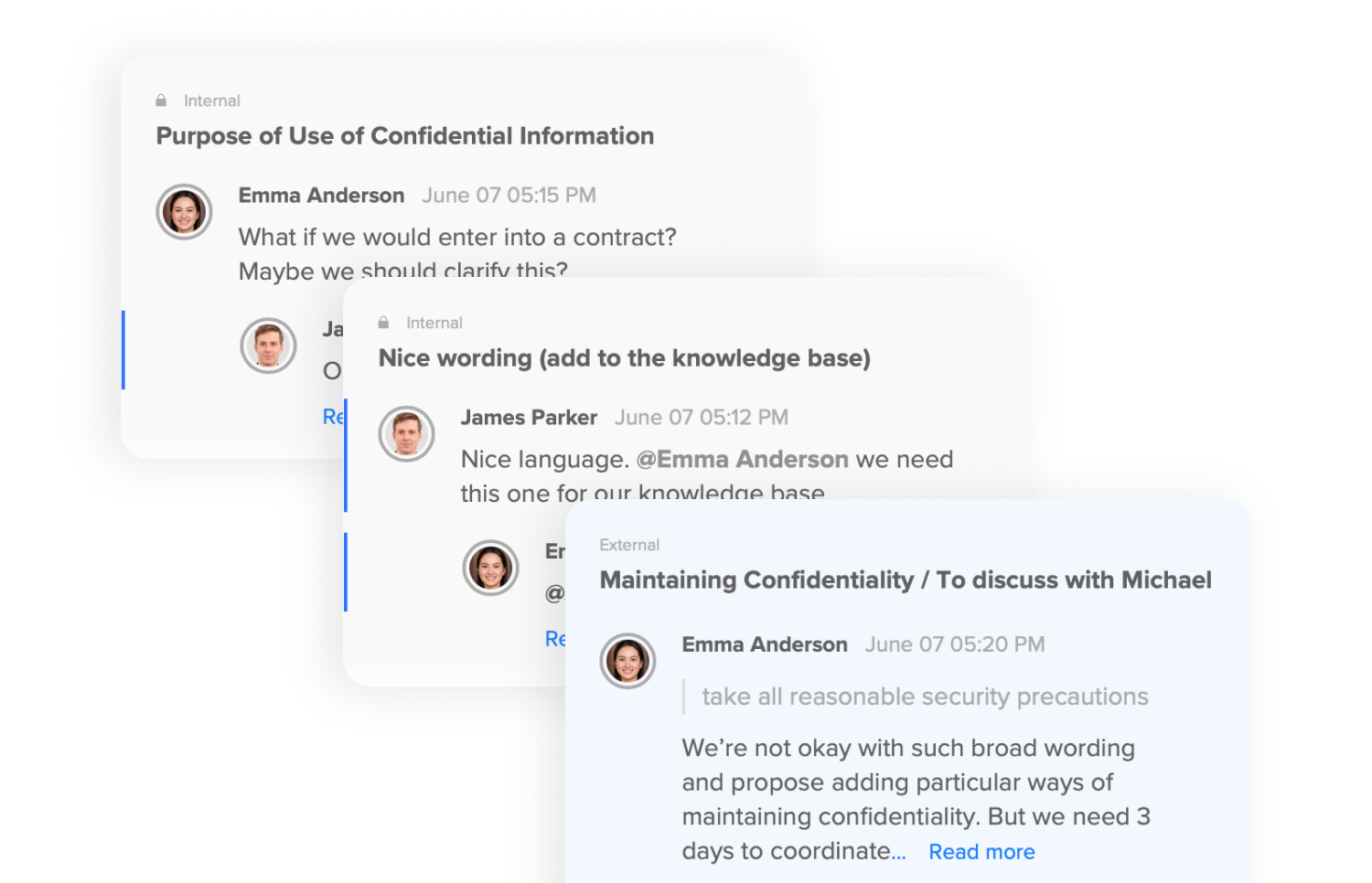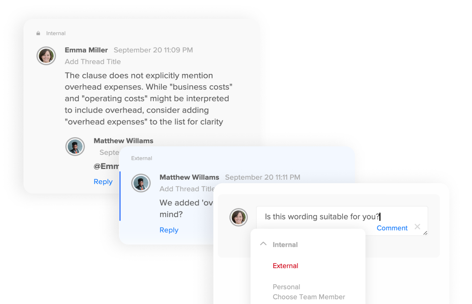 Keep your internal discussions confidential while staying fully informed with both internal and external comments.